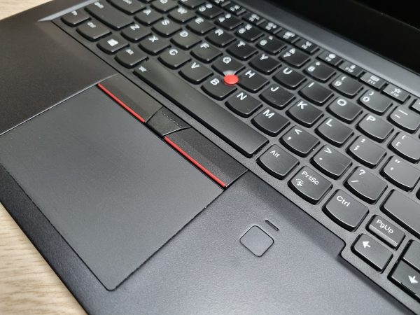 Phần touchpad của T480s được đánh giá khá tốt, bề mặt phủ kính, hỗ trợ đa điểm tạo cảm giác mượt mà. Hai phím chuột trái phải bên trên thì mềm hơn 1 chút, và cảm giác nhấn rất nhẹ. hơn 2 bên chuột phía dưới. Với T480s, Lenovo trang bị cảm biến vân tay bên cạnh touchpad. Tuy nhiên, theo đánh giá cảm quan thì cảm biến vẫn chưa được nhạy lắm, cảm giác nhận vân tay vẫn có độ trễ chút xíu.